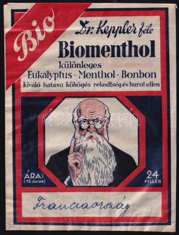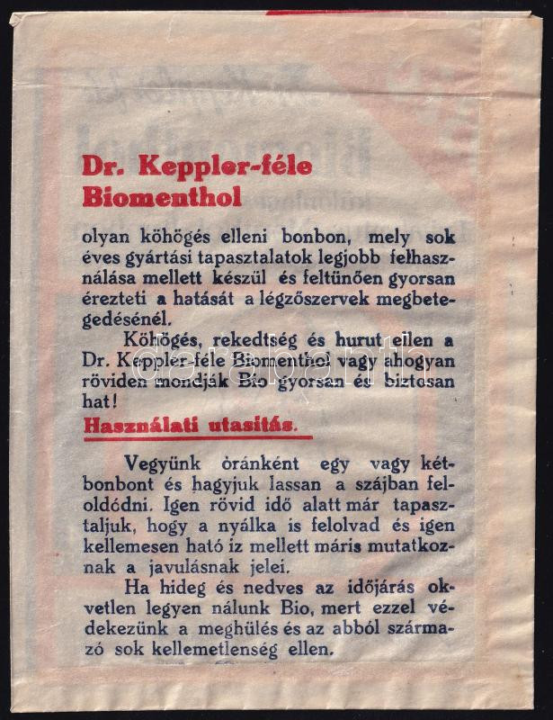 Dr. Keppler-féle Biomenthol Bonbon papírtasakja https://www.darabanth.com/hu/441-Gyorsarveres/441.0/Mutargy-papirregiseg-egyeb/Reklam~500026/Dr-Keppler-fele-Biomenthol-Bonbon-papirtasakja~II2898247