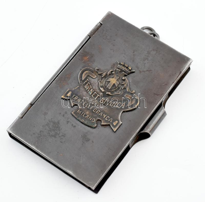 Leírás: Fernet Branca olasz likőr reklám díszítéssel dombornyomott réz notesztartó, belső tükörrel, kopásokkal, 7x5 cm