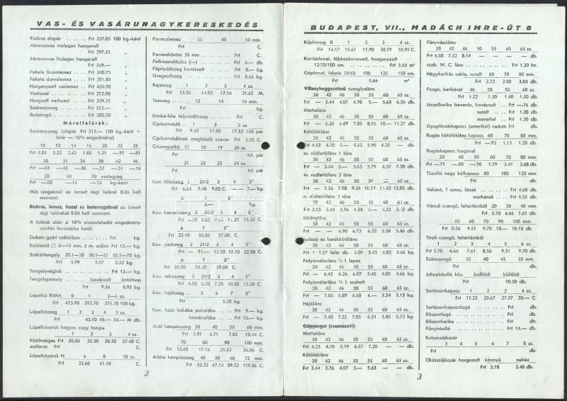 Leírás: cca 1945 Vass Ede Vasárunagykeeskedése reklám árjegyzék 12p.