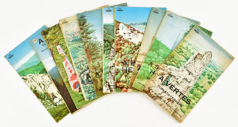 Leírás: 10 db magyar turistatérkép (Pilis, Börzsöny, Mátra, Soproni-hegység, stb.), vegyes méretben és állapotban