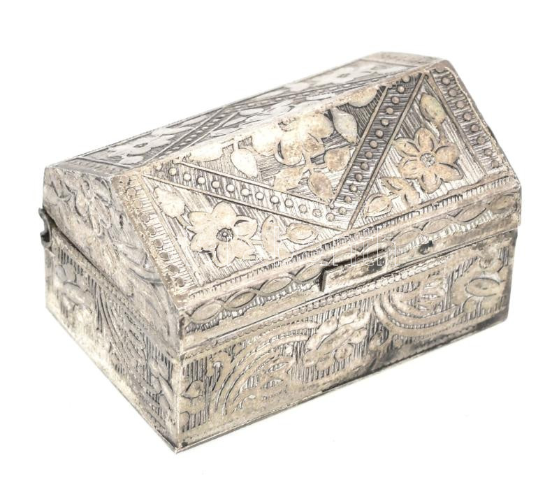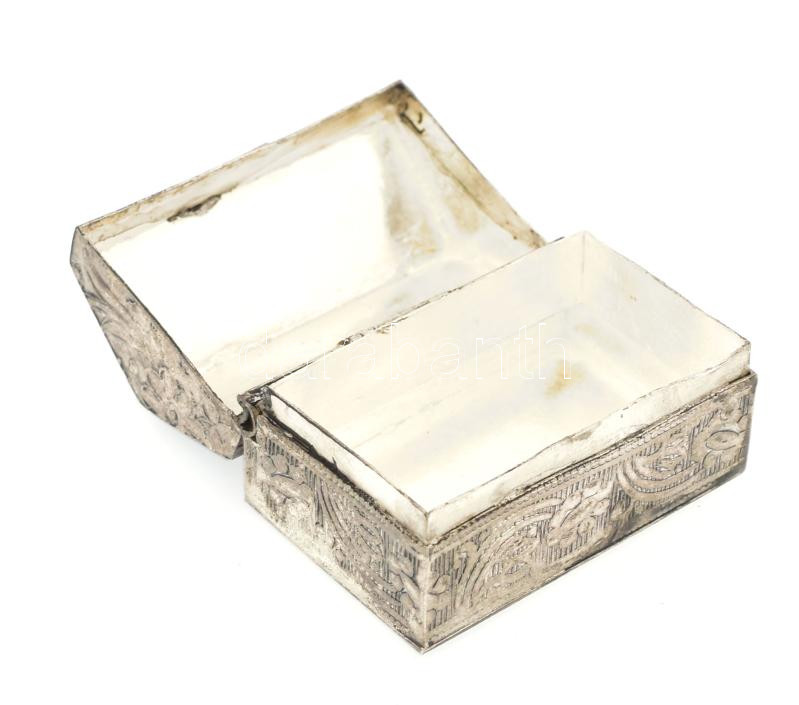 Leírás: Ezüst (Ag) gyógyszeres doboz, jelzéssel, h: 42 mm, nettó: 30,5 g