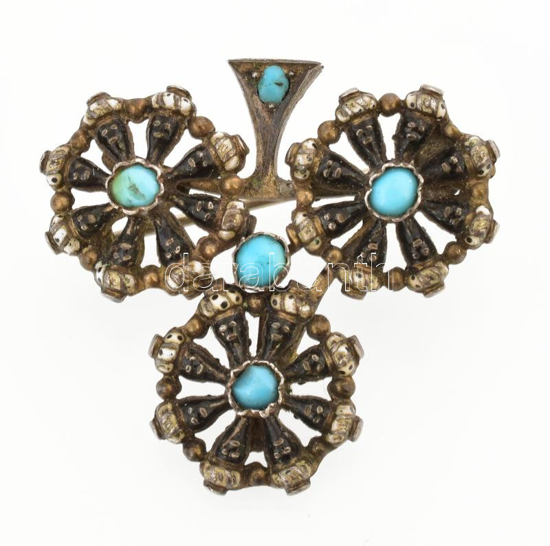 Leírás: Ezüst bross türkizzel Ragasztott. 11,09 g 35 mm