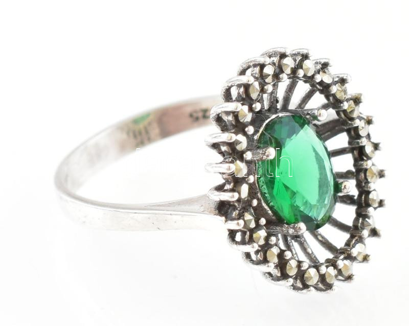 Leírás: Ezüst(Ag) gyűrű zöld kővel, jelzett, méret: 56, bruttó: 3,8 g
