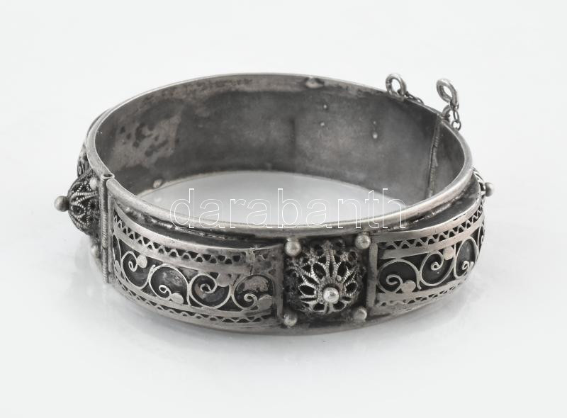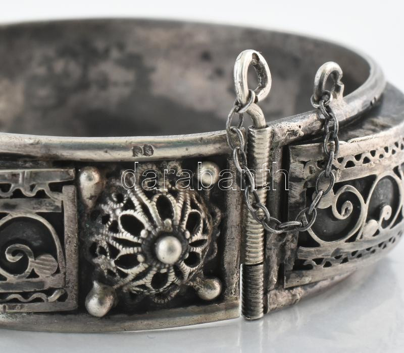 Leírás: Ezüst(Ag) karperec, jelzett, d: 5,8 cm, nettó: 41,7 g