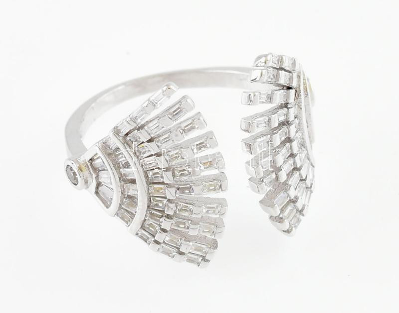 Leírás: Ezüst(Ag) legyezős gyűrű kövekkel gazdagon kirakva, jelzett, kőhiánnyal, méret: 53, bruttó: 3,2 g