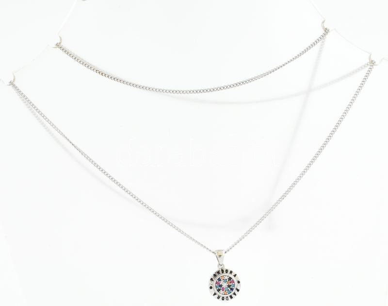 Leírás: Ezüst(Ag) nyaklánc színes köves medállal, jelzett, h: 60 cm, bruttó: 4,9 g