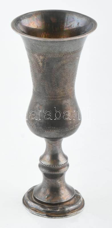 Leírás: Ezüst(Ag) pálinkás pohár, jelzett, m: 10 cm, talpán kisebb horpadásokkal, nettó: 27,6 g