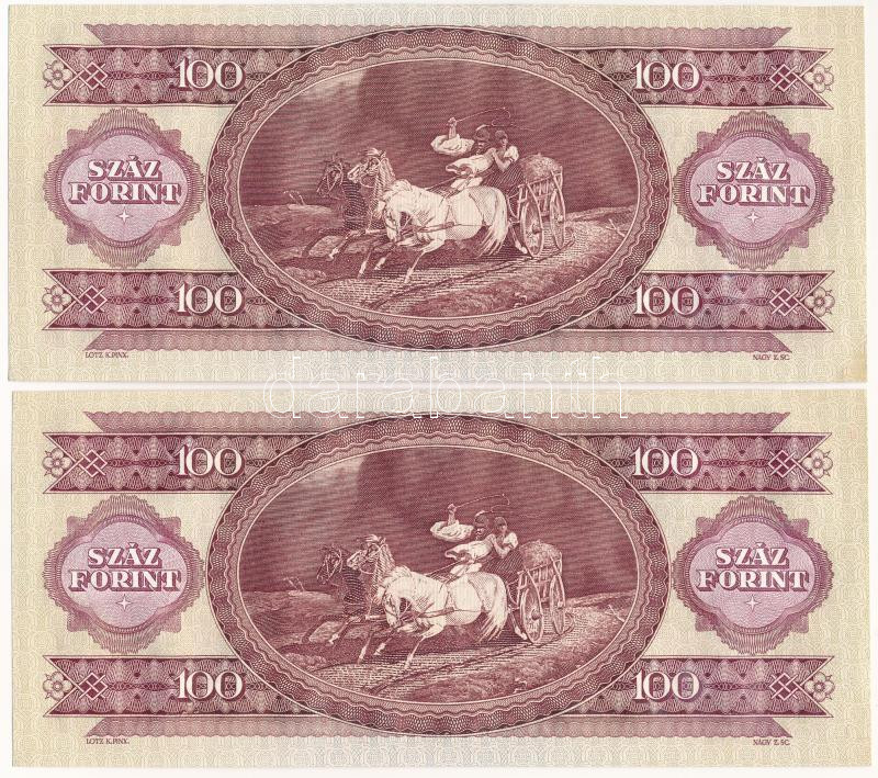 Leírás: 1984. 100Ft (2x) sorszámkövetők "B 363 178688 - B 363 178689" T:AU egyik saroknál kis ragasztónyom Adamo F35