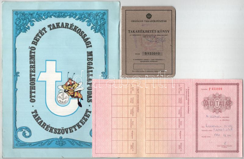 Leírás: Vegyes 9db-os részjegy, valutalap, betétkönyv tétel, kitöltöttek