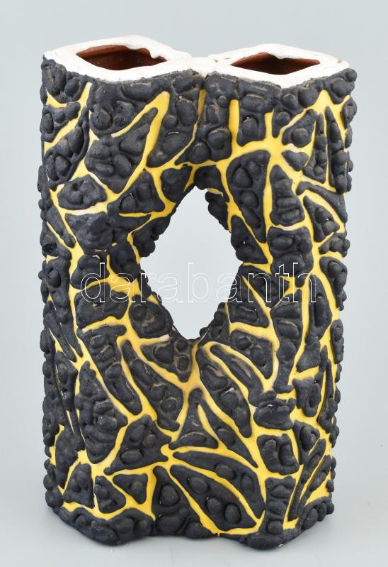 Leírás: Király dupla váza. Tigris mintás, plasztikus, Kézzel festett, jelzett, hibátlan 24 cm