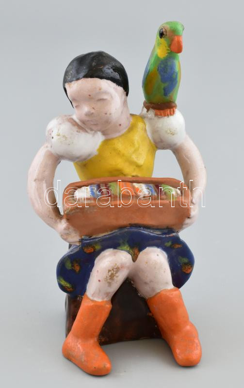 Leírás: Lány papagájjal kerámia figura, jelzéssel, ragasztott, m: 17,5 cm
