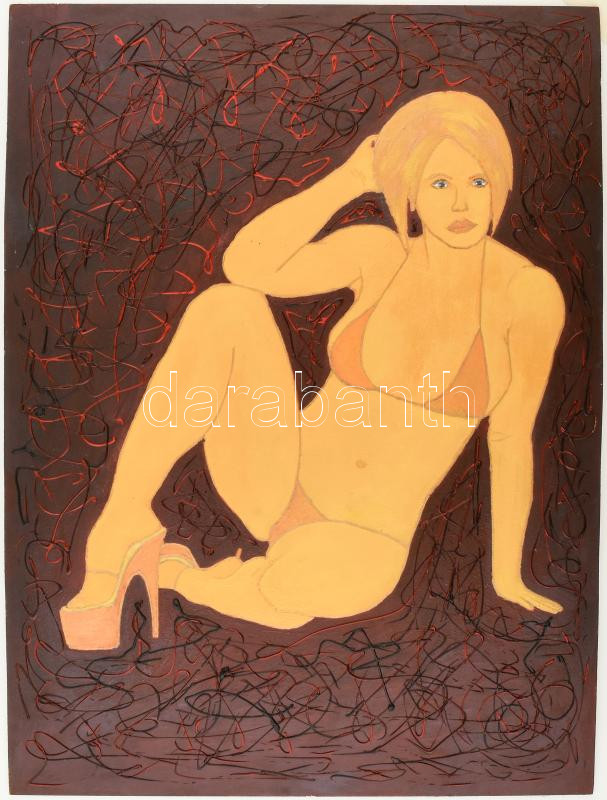 Leírás: Androméda jelzéssel: Hölgy fürdőruhában. Olaj, farost. Hátoldalán jelzett. 58x43 cm