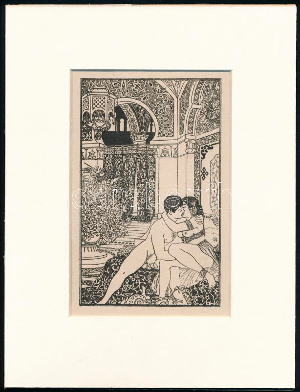 Leírás: Jelzés nélkül: Csók, cinkográfia, papír, paszpartuban, 8,5×14 cm