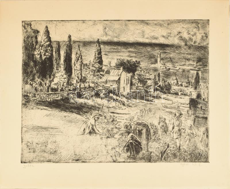 Leírás: Aszódi Weil Erzsébet (1901-1976): Jalta. rézkarc, papír, jelzett, 29x39 cm