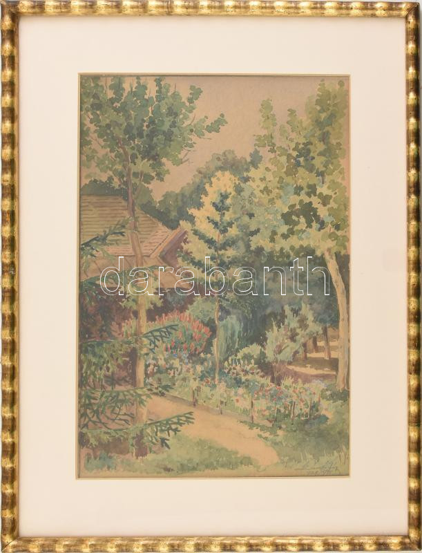 László János (?-?): Virágzó kert, 1929. Akvarell, papír, jelzett. Üveg... https://www.darabanth.com/hu/442-Gyorsarveres/442.0/Festmenyek-es-grafikak/Festmenyek-es-grafikak~500001/Laszlo-Janos-Viragzo-kert-1929-Akvarell-papir-jelzett-Uvegezett-fakeretben-30x20~II2876011