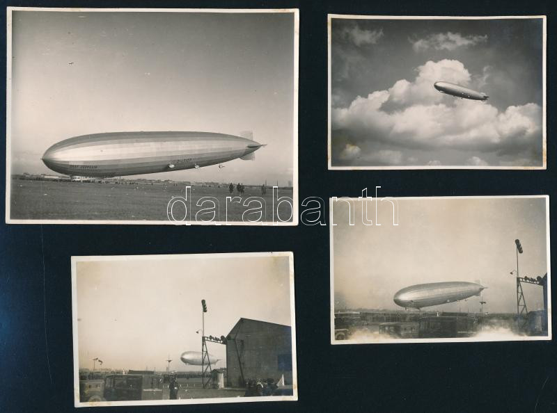 1931.III.29 LZ-127 jelzésű Graf Zeppelin léghajó leszáll Csepelen, össz. 4 db fotó, kettőn előtérben Vármegyék és Városok Országos Mentő Egyesülete gépjárművével, jelzés nélkül, 5,5x8,5 és 8,5x11 cm közötti méretekben
