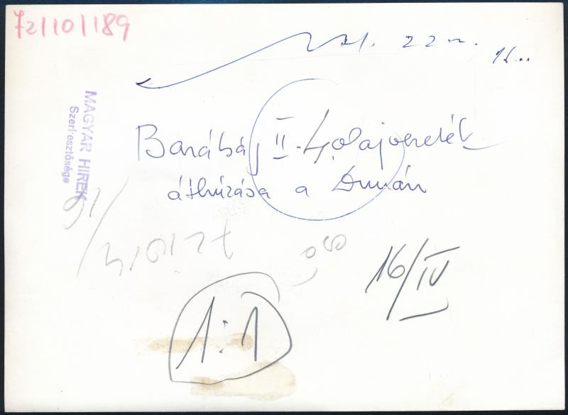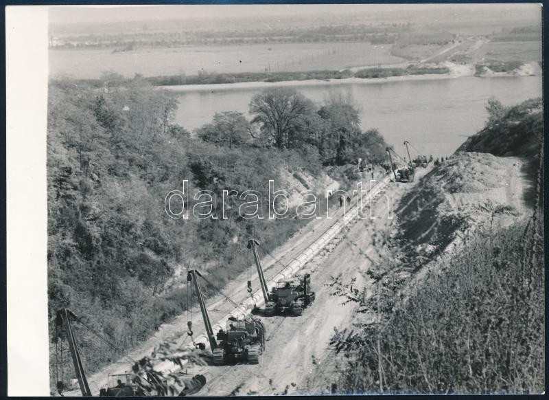 Leírás: 1972 A Barátság kőolajvezeték áthúzása a Dunán, sajtófotó, a hátoldalon feliratozott, pecséttel jelzett, 18x13 cm