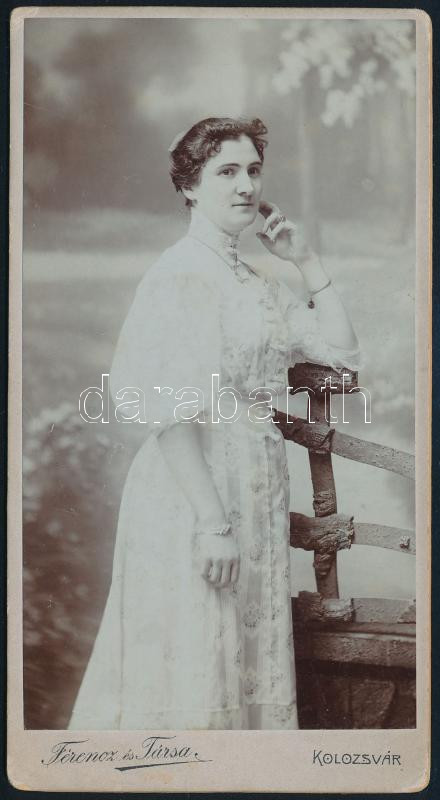 Kolozsvári hölgy. Ferencz és társa. Kabinetfotó.9x16 cm https://www.darabanth.com/hu/442-Gyorsarveres/442.0/Fotomuveszet/Foto~500024/Kolozsvari-holgy-Ferencz-es-tarsa-Kabinetfoto9x16-cm~II2908315