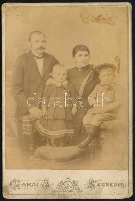 cca 1890 Családi portré, keményhátú fotó Garai szegedi műterméből, fol... https://www.darabanth.com/hu/442-Gyorsarveres/442.0/Fotomuveszet/Foto~500024/cca-1890-Csaladi-portre-kemenyhatu-foto-Garai-szegedi-mutermebol-foltos-16-5C39710-5-cm~II2910828