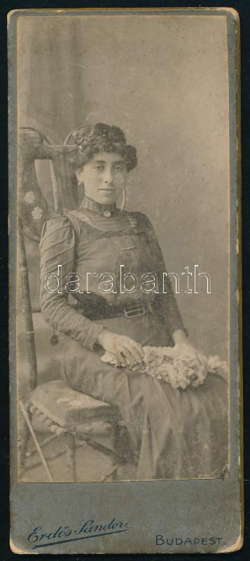 Leírás: cca 1910 Női portré, keményhátú fotó Erdős Sándor budapesti műterméből, 12×5 cm