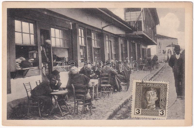 Leírás: Shkoder, Shkodra, Skadar, Skodra, Scutari, Skutari; Vor einem türkischen Kaffeehaus. Welt-Press-Photo 1916.1773. / Turkish cafe house