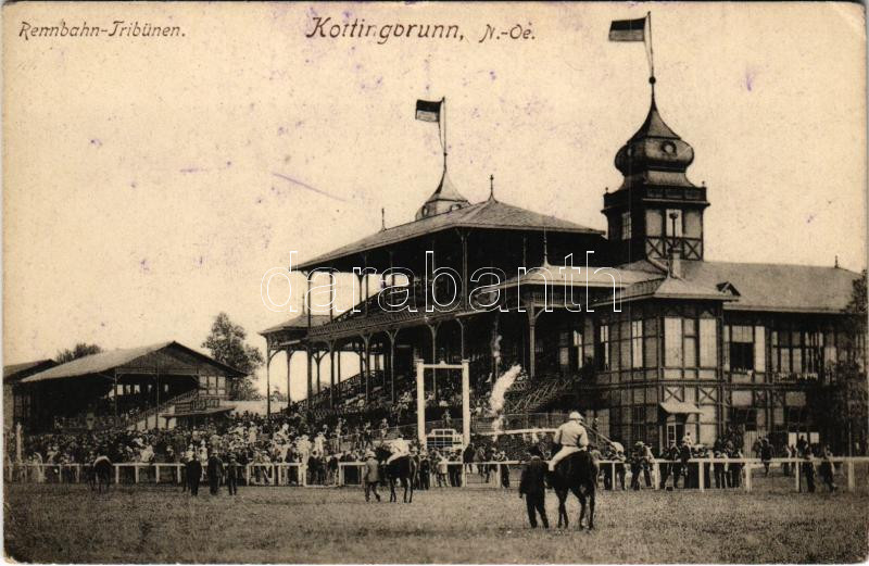 Leírás: Kottingbrunn, Rennbahn-Tribünen / horse race, racecourse grandstands (EK)