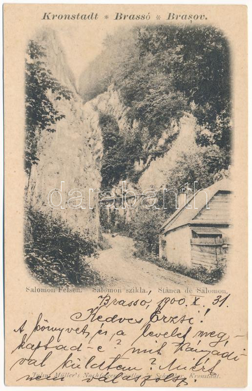 1900 Brassó, Kronstadt, Brasov; Salamon szikla. Julius Müller utóda Ta... https://www.darabanth.com/hu/442-Gyorsarveres/442.0/Kepeslapok/Erdely~2000007/1900-Brasso-Kronstadt-Brasov-Salamon-szikla-Julius-Muller-utoda-Tartler-Schreiber-kiadasa-~II2893722