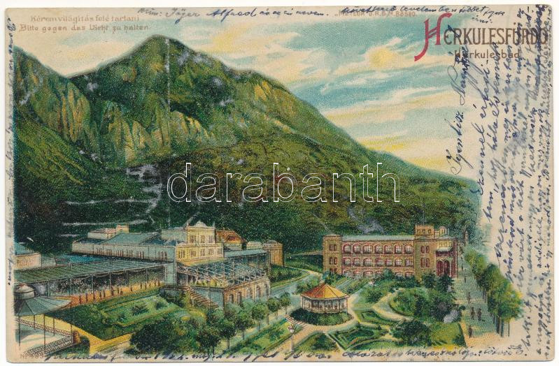 Leírás: 1902 Herkulesfürdő, Herkulesbad, Baile Herculane; Világosság felé tartandó! Alfréd Jäger Meteor No. 489. / spa. hold to light litho (apró szakadás / tiny tear)