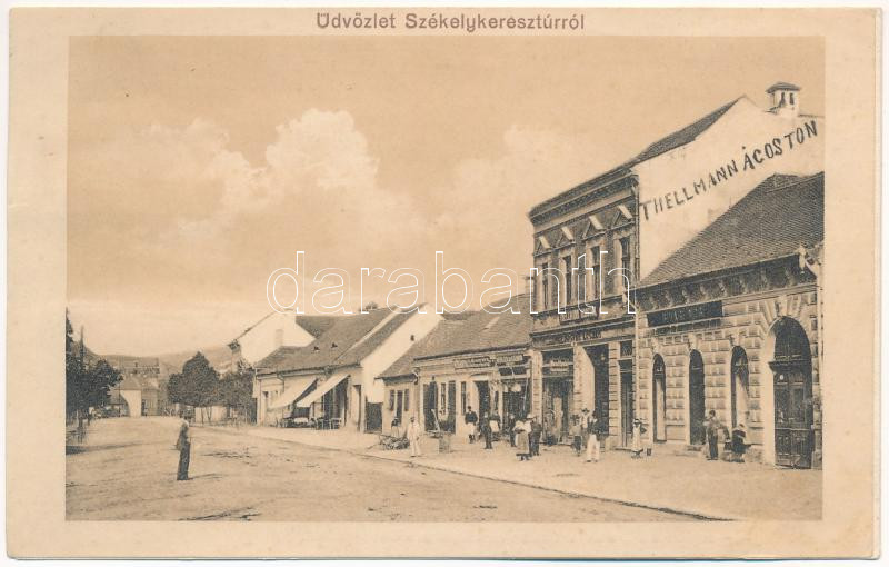 1914 Székelykeresztúr, Kristur, Cristuru Secuiesc; Thellmann Ágoston, Rösler és Gábor üzlete, Kőbányai első magyar sörfőzde. Szabó Kálmán kiadása / shops, beer hall (r)