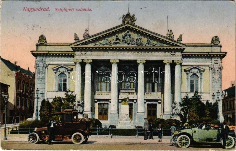 1915 Nagyvárad, Oradea; Szigligeti színház, automobilok. Benkő Artur k... https://www.darabanth.com/hu/442-Gyorsarveres/442.0/Kepeslapok/Erdely~2000007/1915-Nagyvarad-Oradea-Szigligeti-szinhaz-automobilok-Benko-Artur-kiadasa-theatre-automob~II2890659