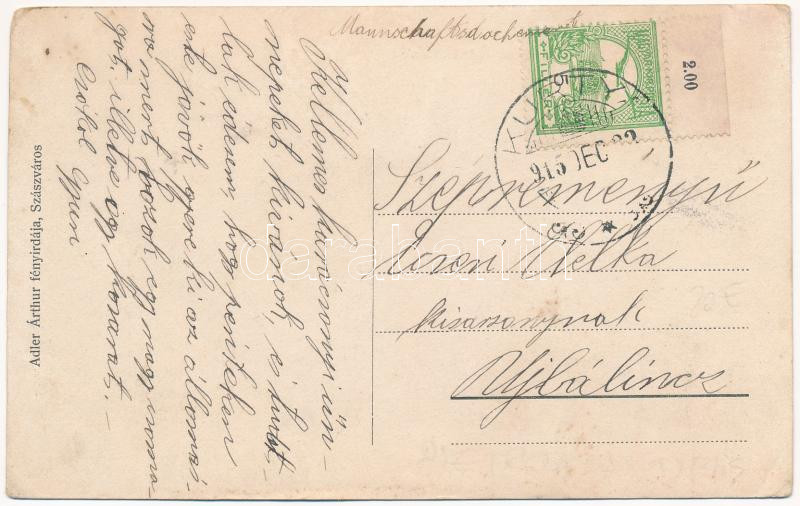 Leírás: 1915 Ruszkatő, Poieni (Marzsina mellett / near Margina); Kőszegi vendéglő és kocsma, étterem. Adler Árthur fényirda Szászváros / restaurant, beer hall (EK)