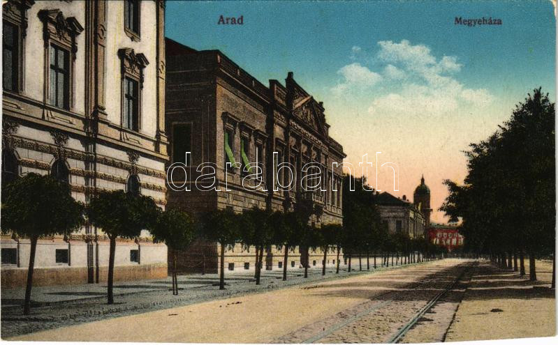 Arad, Megyeháza. Kerpel Izsó kiadása / county hall (vágott / cut) https://www.darabanth.com/hu/442-Gyorsarveres/442.0/Kepeslapok/Erdely~2000007/Arad-Megyehaza-Kerpel-Izso-kiadasa-county-hall-vagott-cut~II2911305