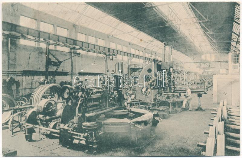 Leírás: Resica, Resita; Fabrica de rotii / Räderpaar Dreherei. Anton Neff 1926. Nr. 5. / kerékgyár belső / wheel factory interior