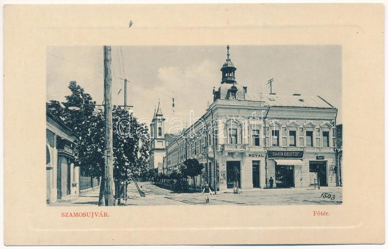 Szamosújvár, Gherla; Fő tér, Royal kávéház, Sahin Kristóf üzlete. W.L.... https://www.darabanth.com/hu/442-Gyorsarveres/442.0/Kepeslapok/Erdely~2000007/Szamosujvar-Gherla-Fo-ter-Royal-kavehaz-Sahin-Kristof-uzlete-WL-Bp-7036-1910-13-1~II2891010