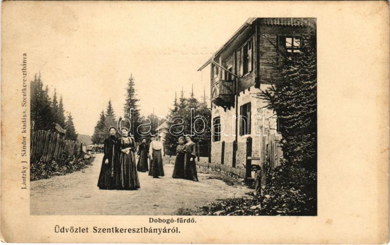 Leírás: Szentkeresztbánya, Vlahita Noua, Minele Lueta (Lucta) (Szentegyháza, Vlahita); Dobogó fürdő. Lántzky J. Sándor kiadása / spa, bath (EK)