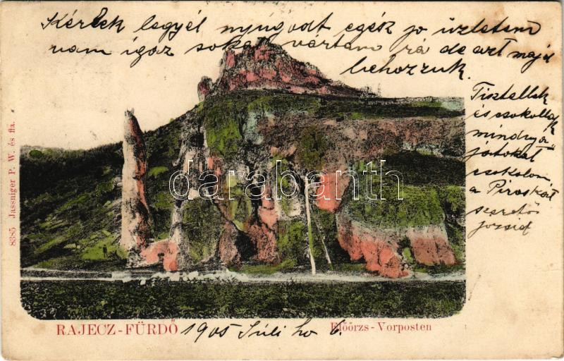 Leírás: 1905 Rajecfürdő, Rajecz-fürdő, Rajecké Teplice; Előőrs. Jassinger P.W. és fia 8385. / Vorposten (fa)