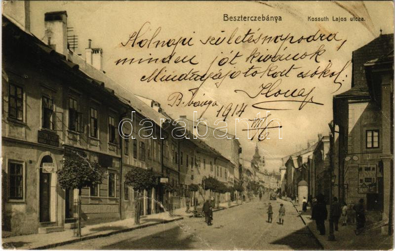 1914 Besztercebánya, Banská Bystrica; Kossuth Lajos utca, Kostomlatszk... https://www.darabanth.com/hu/442-Gyorsarveres/442.0/Kepeslapok/Felvidek~2000008/1914-Besztercebanya-Banska-Bystrica-Kossuth-Lajos-utca-Kostomlatszky-A-es-Bothar-G-uzlete-~II2910409