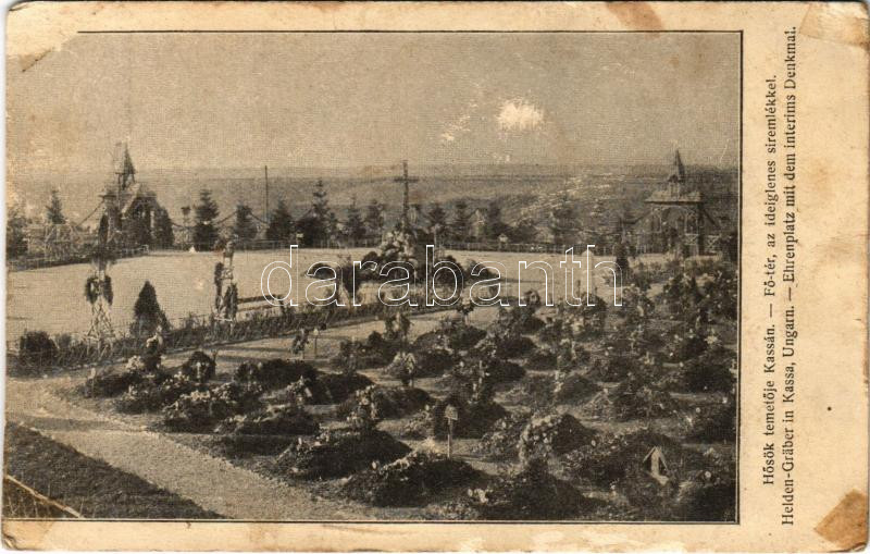 1927 Kassa, Kosice; Hősök temetője, Fő tér az ideiglenes síremlékkel / Helden-Gräber, Ehrenplatz mit dem interims Denkmal / K.u.K. military heroes cemetery with temporary tombs (fl)