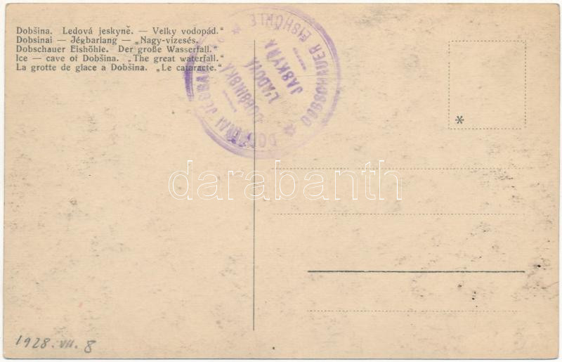 1928 Dobsina, Dobschau; Dobsinai jégbarlang, belső, Nagy vízesés / Eis... https://www.darabanth.com/hu/442-Gyorsarveres/442.0/Kepeslapok/Felvidek~2000008/1928-Dobsina-Dobschau-Dobsinai-jegbarlang-belso-Nagy-vizeses-Eishohle-Dobsina-ice-cave-~II2910045