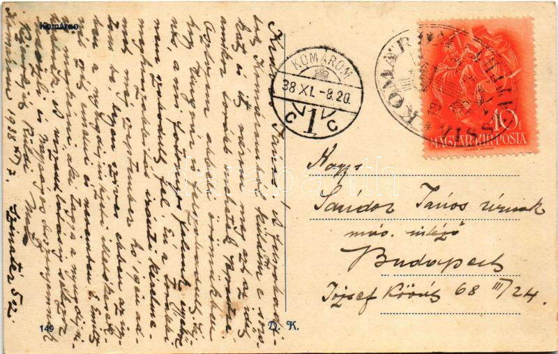 Leírás: 1938 Komárom, Komárno; látkép / general view + "1938 Komárom visszatért" So. Stpl.