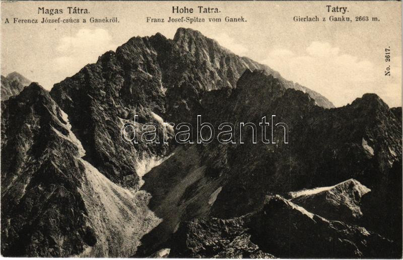 Tátra, Magas-Tátra, Vysoké Tatry; Ferenc József-csúcs a Ganekról. Franz Pietschmann No. 2617. / Franz Josef-Spitze vom Ganek / Gierlach z Ganku / mountain peaks