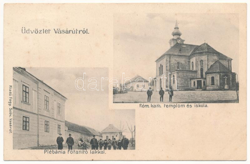 Vásárút, Trhová Hradská; Római katolikus templom és iskola, Plébánia é... https://www.darabanth.com/hu/442-Gyorsarveres/442.0/Kepeslapok/Felvidek~2000008/Vasarut-Trhova-Hradska-Romai-katolikus-templom-es-iskola-Plebania-es-fotanito-lak-~II2910434