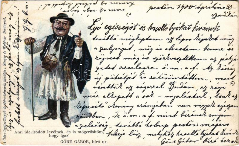 1900 Göre Gábor bíró úr. Göre levelezőlapok és Göre könyvek kiadója Si... https://www.darabanth.com/hu/442-Gyorsarveres/442.0/Kepeslapok/Folklor~2000074/1900-Gore-Gabor-biro-ur-Gore-levelezolapok-es-Gore-konyvek-kiadoja-Singer-es-Wolfner-~II2910063