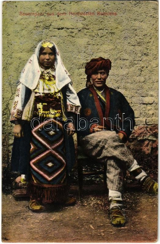 1918 Bauernpaar aus dem Nordwesten Bosniens / Északnyugati bosnyák pár... https://www.darabanth.com/hu/442-Gyorsarveres/442.0/Kepeslapok/Folklor~2000074/1918-Bauernpaar-aus-dem-Nordwesten-Bosniens-Eszaknyugati-bosnyak-par-Bosnian-folklore-plus-Ku~II2602959