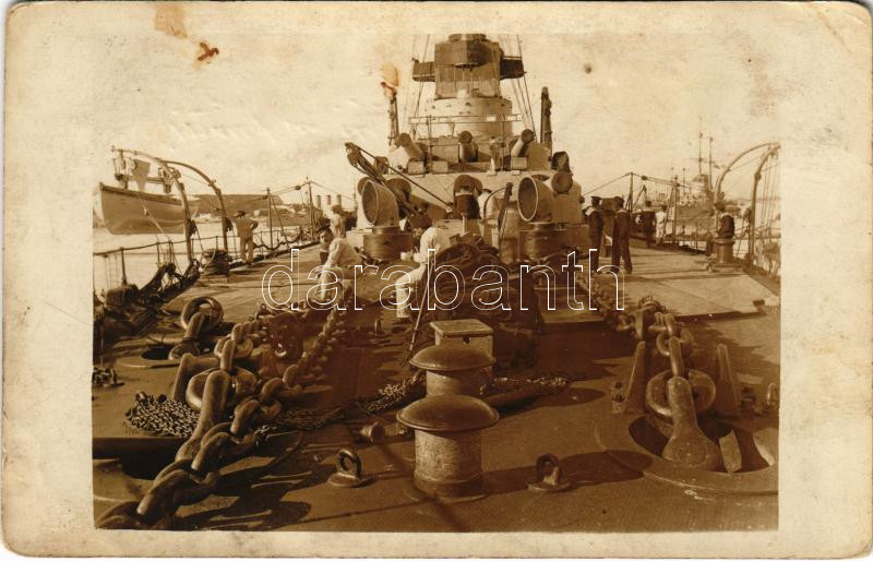 Leírás: 1913 K.u.K. Kriegsmarine SMS Viribus Unitis Osztrák-Magyar Haditengerészet Tegetthoff-osztályú dreadnought csatahajó matrózainak csoportképe a fedélzeten / WWI Austro-Hungarian Navy, mariners on on the board of SMS Viribus Unitis. photo (fl)