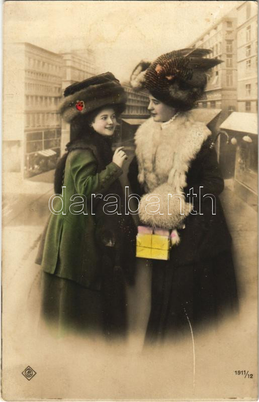 Leírás: 1911 Divatos hölgyek bundában és kalapban / fashion ladies in fur and hats