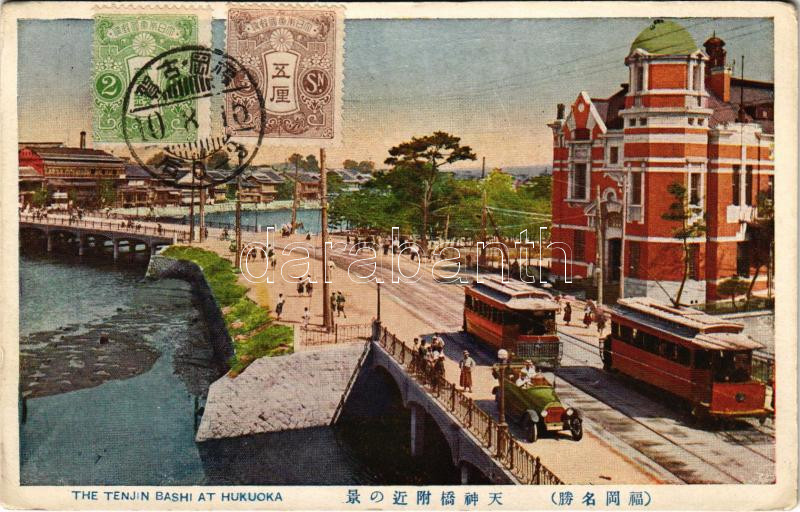 Leírás: Osaka, The Tenjin Bashi at Hukuoka, tram, automobile (EK)