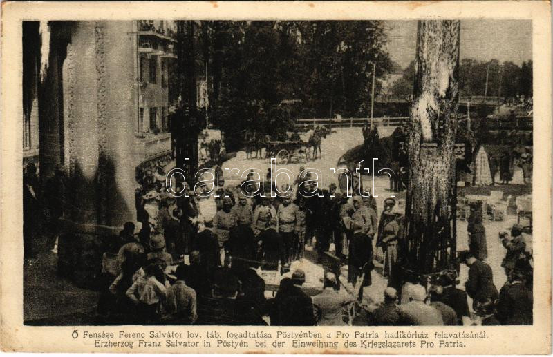 1918 Pöstyén, Piestany; Őfensége Ferenc Salvátor lovassági tábornok fogadtatása a Pro Patria hadikórház felavatásánál / WWI Austro-Hungarian K.u.K. military, welcome of Archduke Franz Salvator of Austria for the inauguration of the military hospital in Piestany + "Rotes Kreuz Kriegsspital in Pöstyén V. Gruppe" (fl)