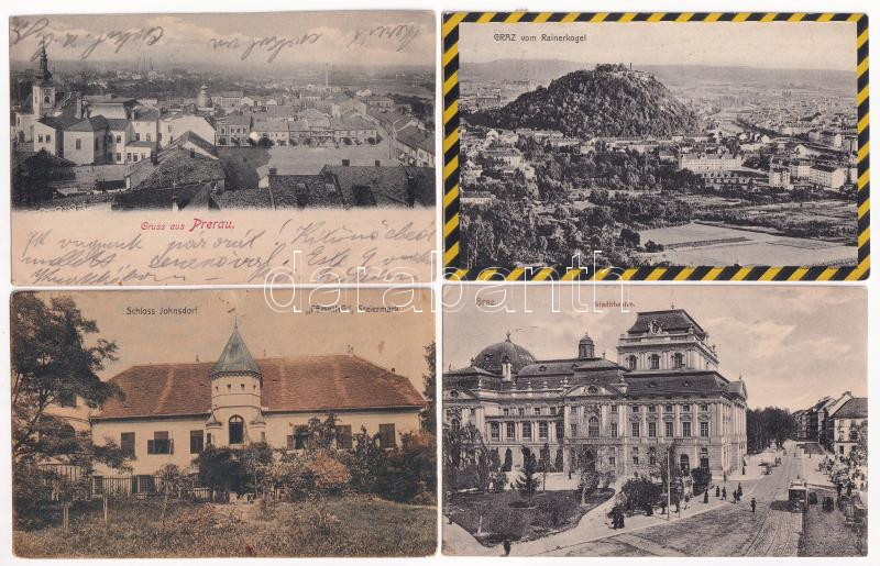 Leírás: 4 db RÉGI osztrák város képeslap / 4 pre-1945 Austrian town-view postcards