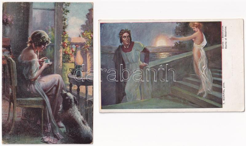 Leírás: 5 db régi képeslap hölgyekről / 5 pre-1945 lady postcards